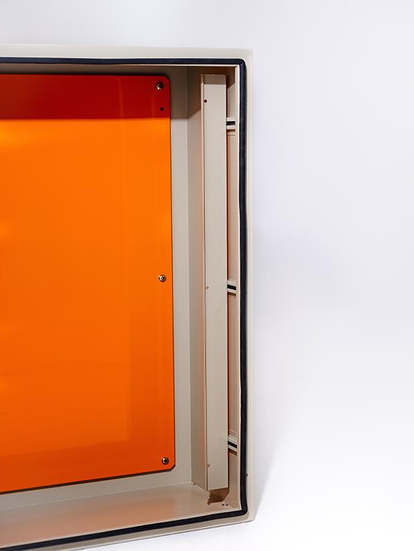 - Porta Externa: Projetada com dobradiças de nylon de alta resistência, permitindo uma abertura completa de até 180° para um acesso total ao quadro.